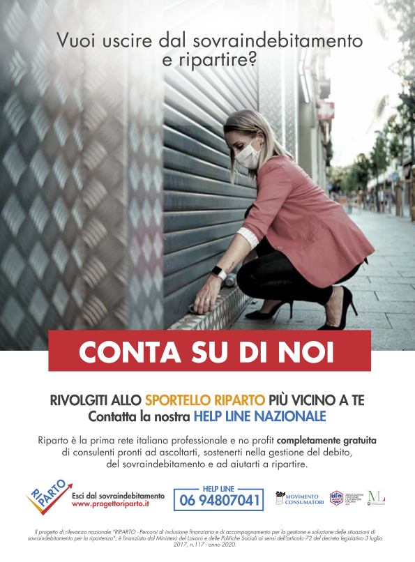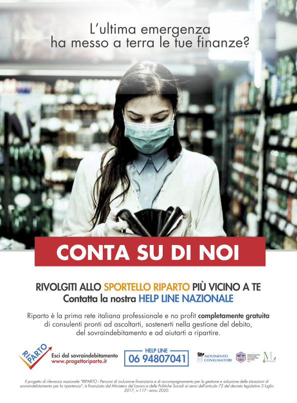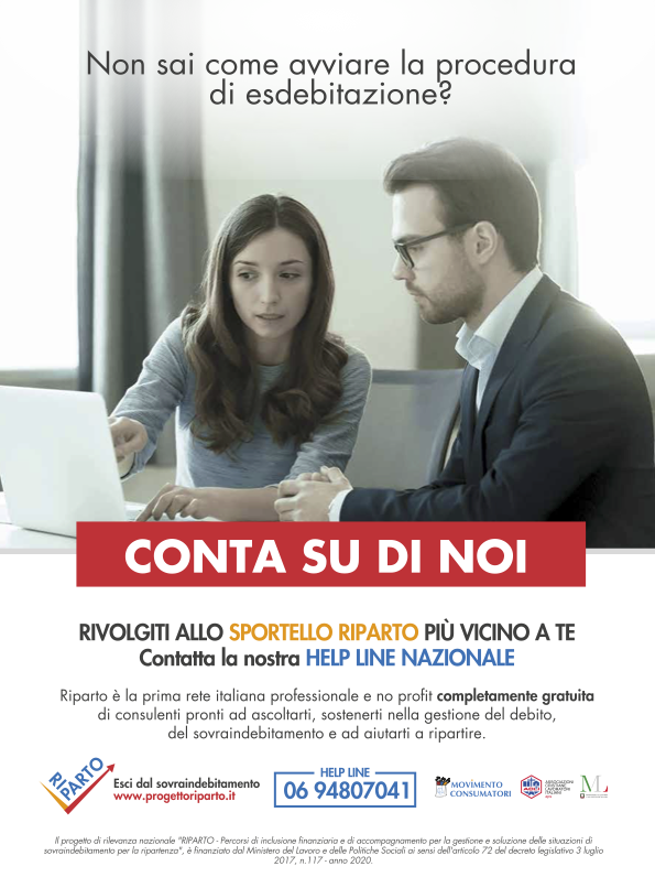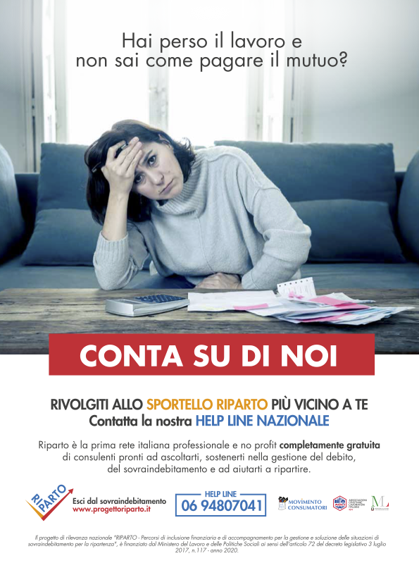 Purtroppo sono tempi difficili sotto molti punti di vista non escluso quello economico per alcune persone. Una dimensione delle difficoltà economiche è quella del sovfraindebitamento, ovvero la circostanza in cui, per cause diverse e spesso non dipendenti dalla volontà, ci si trova a dover fronteggiare spese e debiti con entrate che si riducono od azzerano temporaneamente. Per questo è nato il progetto Riparto, una iniziativa delle ACLI e del Movimento Consumatori.